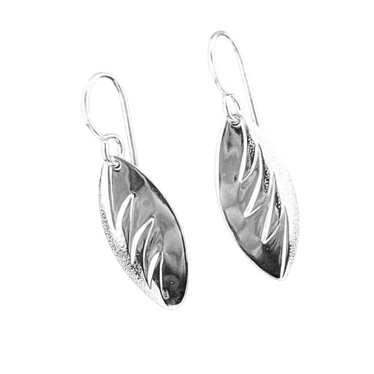 Sterling Silver .925 HOOK Earrings 7mmx22mm Leaf Front edge embossed