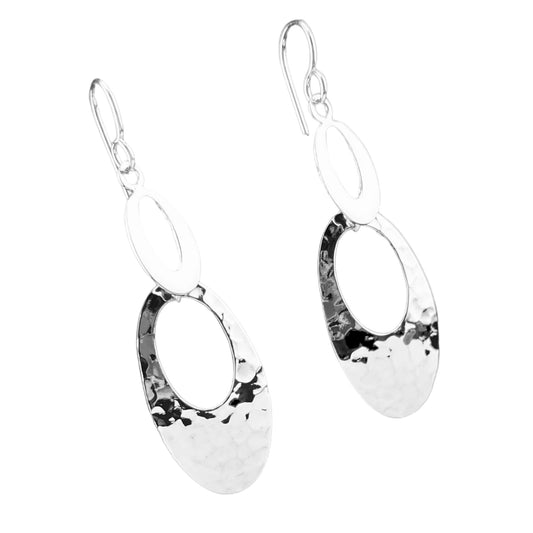 Sterling Silver .925 HOOK Earrings 22mmx50mm Two Tier Open Ovals with Hammered and Smooth finish