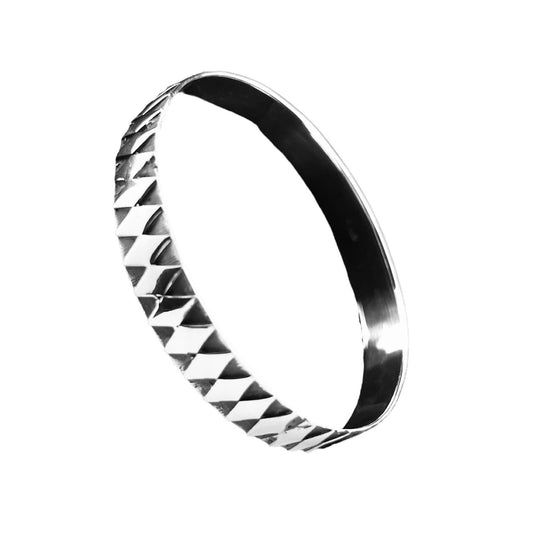 Sterling Silver .925 Bangle Bracelet 65mmx10mm Repeated Diamond Pattern