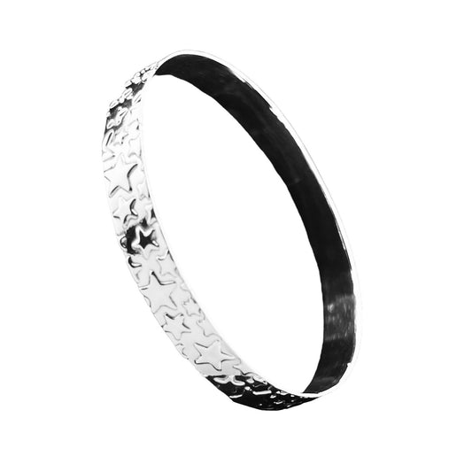 Sterling Silver .925 Bangle Bracelet 68mmx7mm Stars