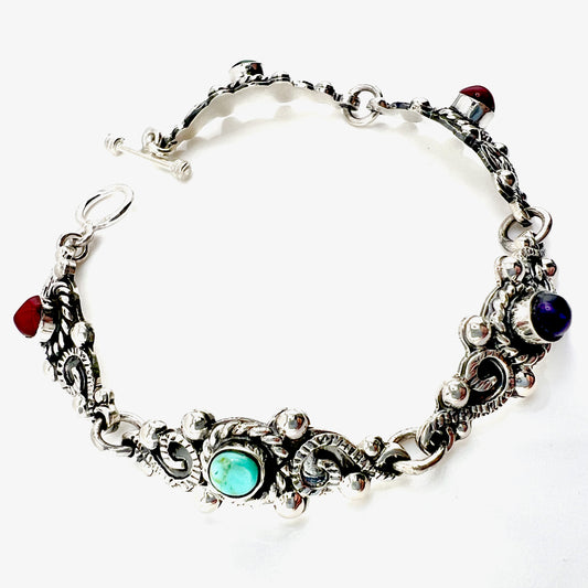 16cm Silver Bracelet with Coral Turquoise Amethyst
