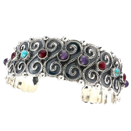 7cm x 2.3cm Silver Bracelet with Amathyst Granate Turquoise