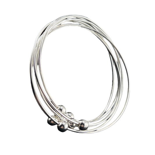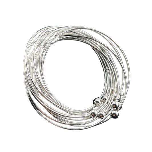 Sterling Silver .925 Bangle Bracelet 70mmx10mm 7 strand with Balls