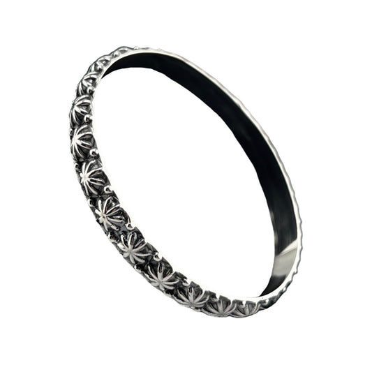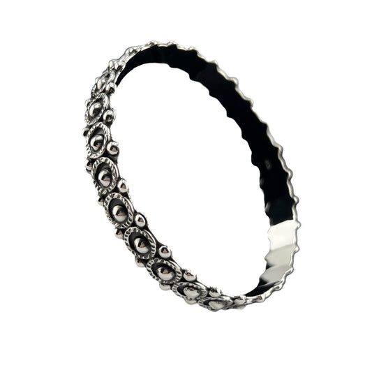 Sterling Silver .925 Bangle Bracelet 65mmx8mm Bolitas Flower