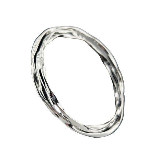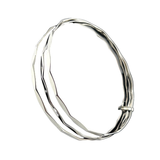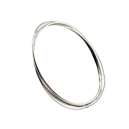 Sterling Silver .925 Bangle Bracelet 65mmx5mm 3 strand Undulating Smooth