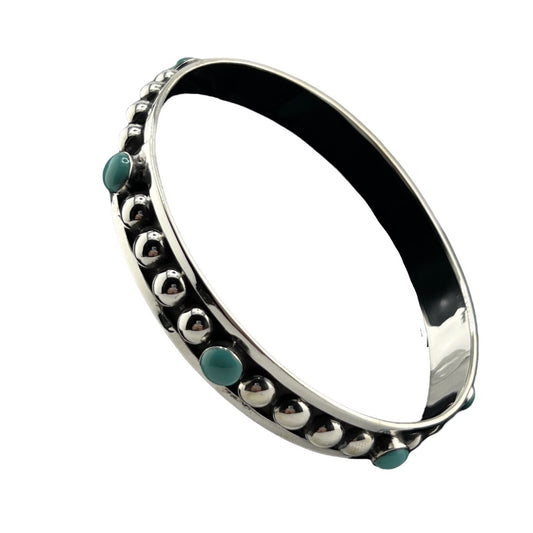 Sterling Silver .925 Bangle Bracelet 71mmx5mm Silver Sphere with Turquoise