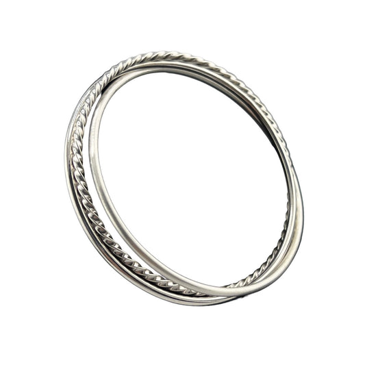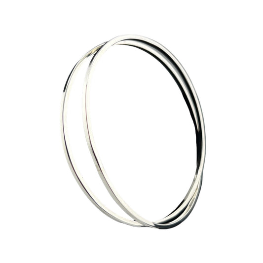 Sterling Silver .925 Bangle Bracelet 70mmx2mm Two Strand Undulating with Smooth Round