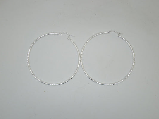 70cm Diamond Cut Solid Silver HOOP Earrings