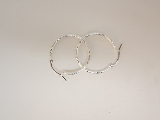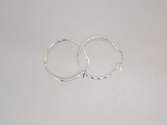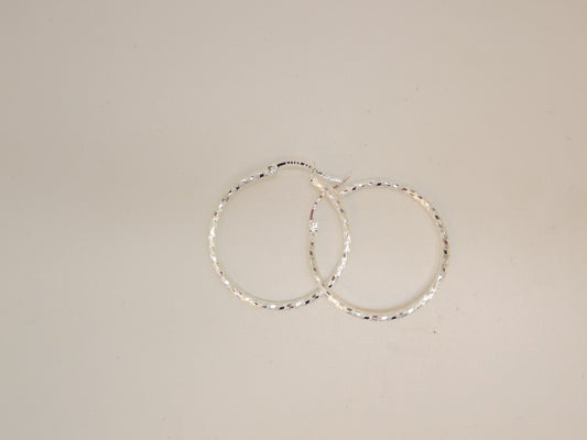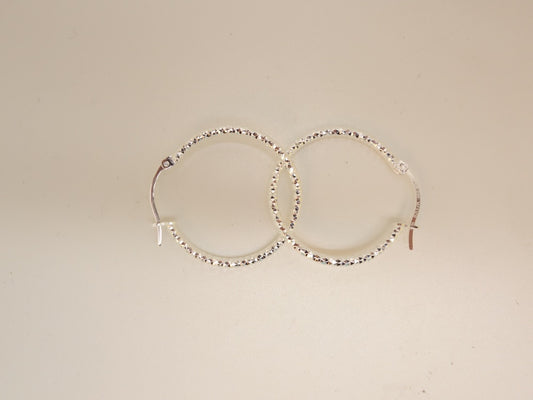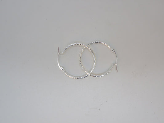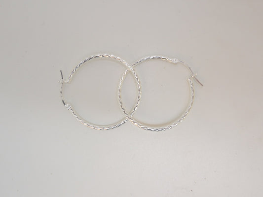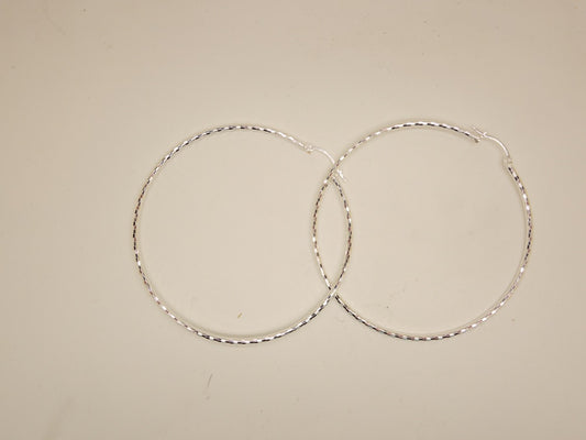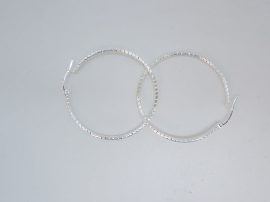 60cm Diamond Cut Solid Silver HOOP Earrings