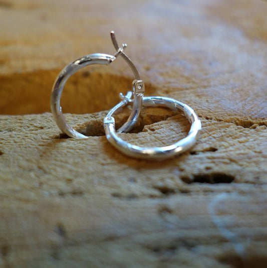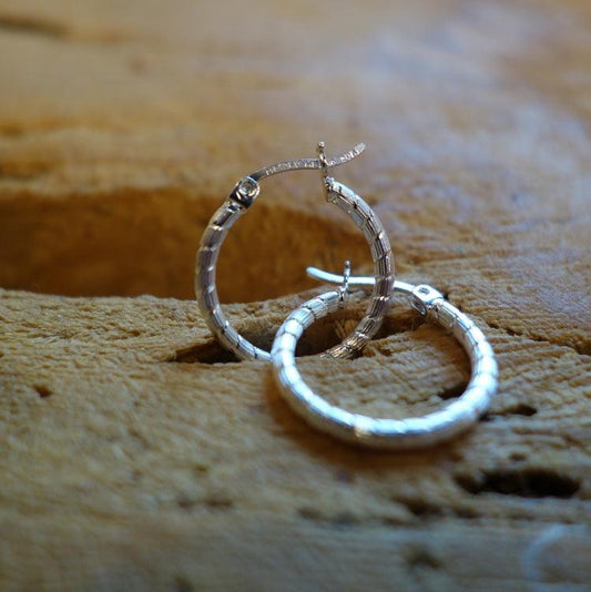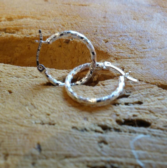 15cm Diamond Cut Solid Silver HOOP Earrings