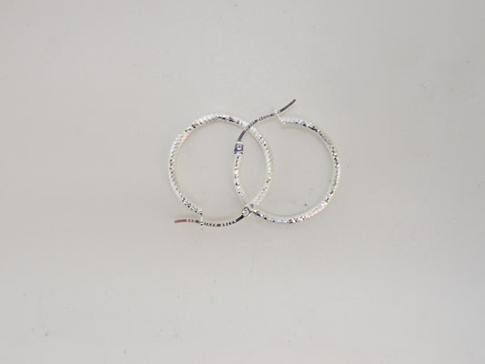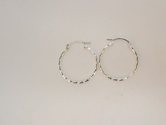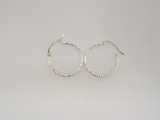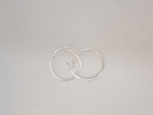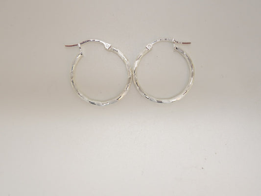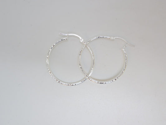 25cm Diamond Cut Solid Silver HOOP Earrings