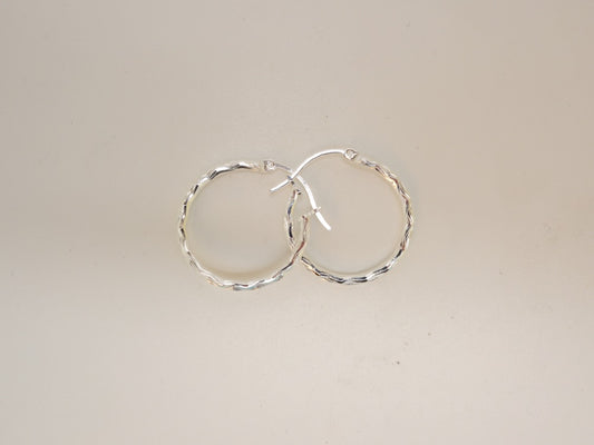 20cm Diamond Cut Solid Silver HOOP Earrings