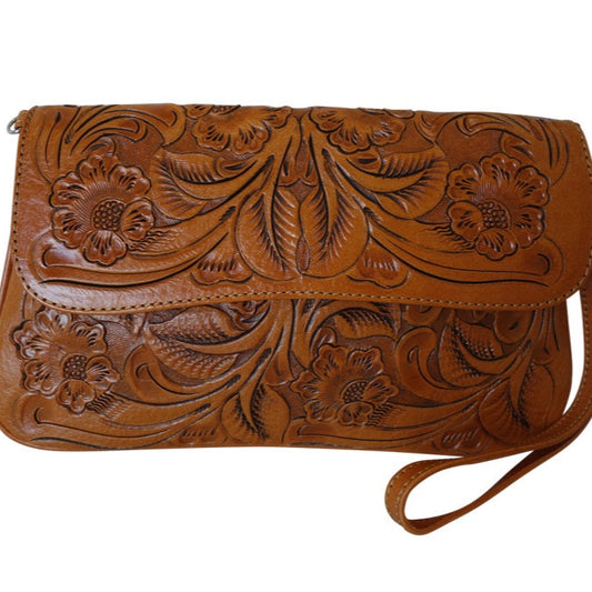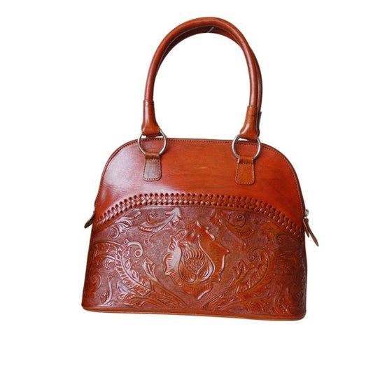 XALAPA Handtooled Leather Handbag 14"x12"5" T Bugati Color