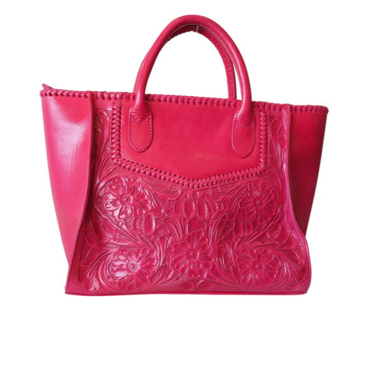 XECUL Handtooled Leather Handbag 16"x10"6" Fusha Color