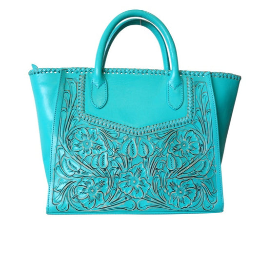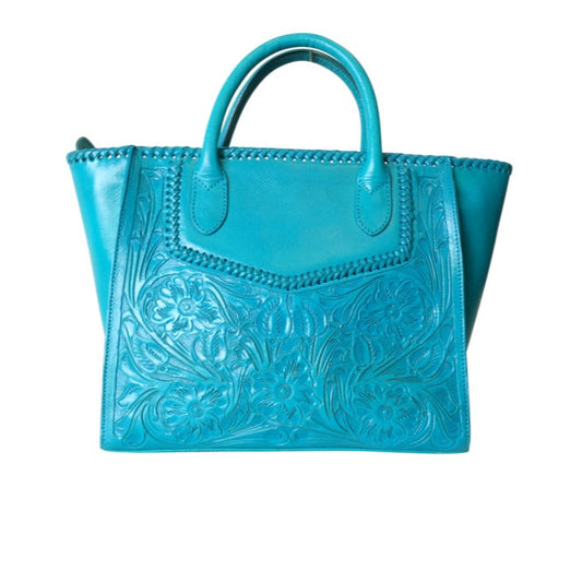 XECUL Handtooled Leather Handbag 16"x10"6" Turquoise Color