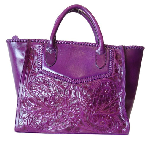 XECUL Handtooled Leather Handbag 16"x10"6" Purple Color