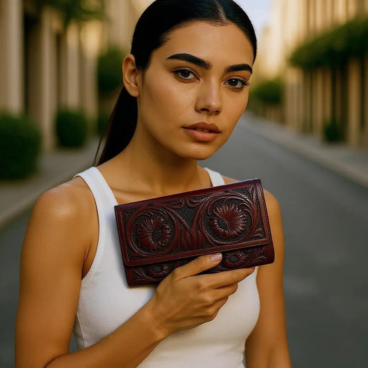 Handtooled Leather Wallet T Bugati Color