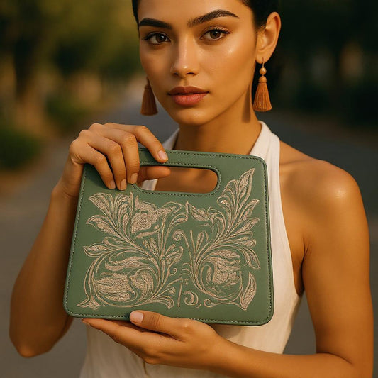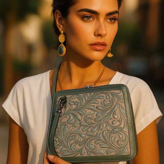 XECUL Handtooled Leather Handbag 16"x10"6" Menta RP Color