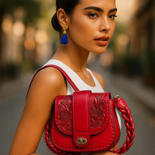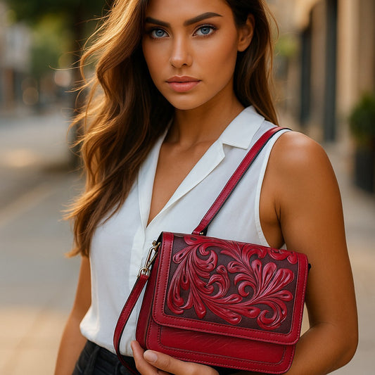 GRANADA Handtooled Leather Handbag Bugati Color 10"x6"x1"