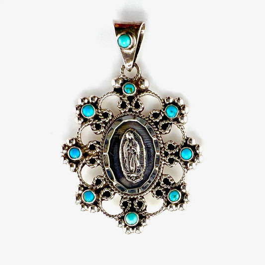 5cm 925 silver pendant with turquoise around Virgin