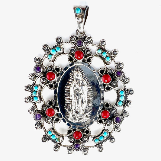 5cm virgin with amethyst coral turquoise 925 silver pendant