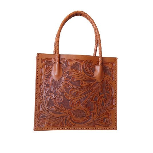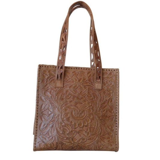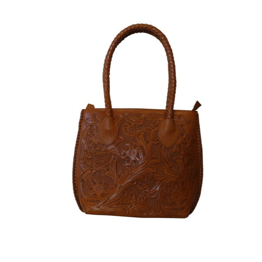 UXMAL GDE Handtooled Leather Handbag 12"x7"x13" Saddle Color