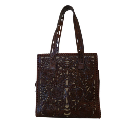 COAHUILA CH Handtooled Leather Handbag 14"x 5"x 10" T Bugati Color