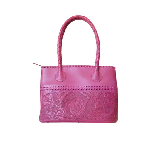 COAHUILA GDE Handtooled Leather Handbag 16"x 6" 12" Pink Color
