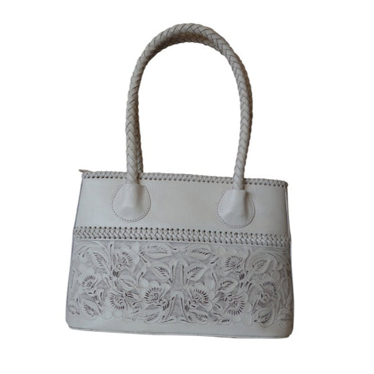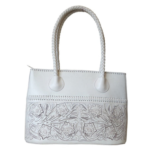 COAHUILA CH Handtooled Leather Handbag 14"x 5"x 10" White Color