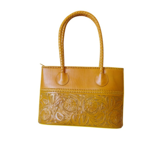 COAHUILA GDE Handtooled Leather Handbag 16"x 6" 12" Yellow Color