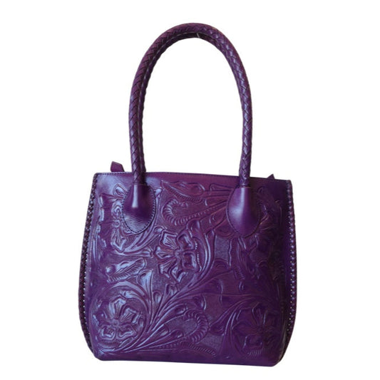 IOWA Handtooled Leather Handbag 14"x4"x11" Purple Color