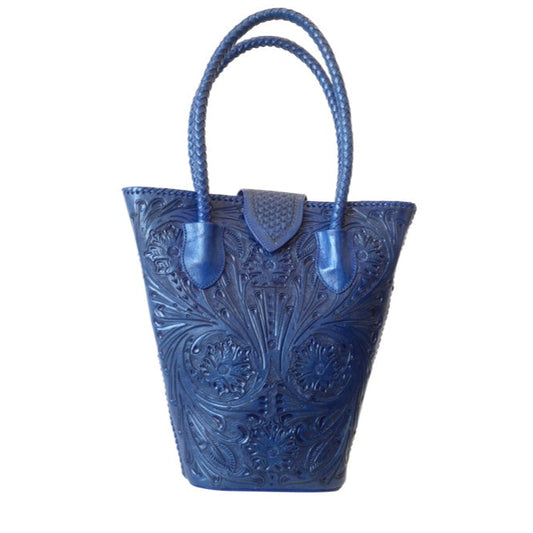 MAYA 16"x2"x15.5" Handtooled Leather Handbag Blue Color