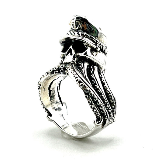Size 12 Silver Ring with skull octopus with garison hat