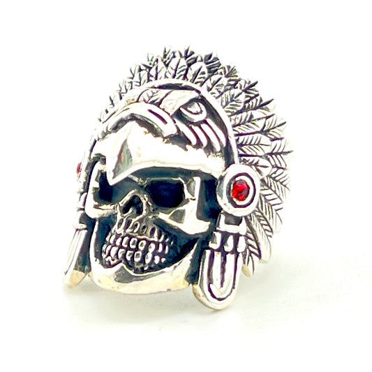 Size 11 Silver Ring with Flacon and Skull Garnet accent