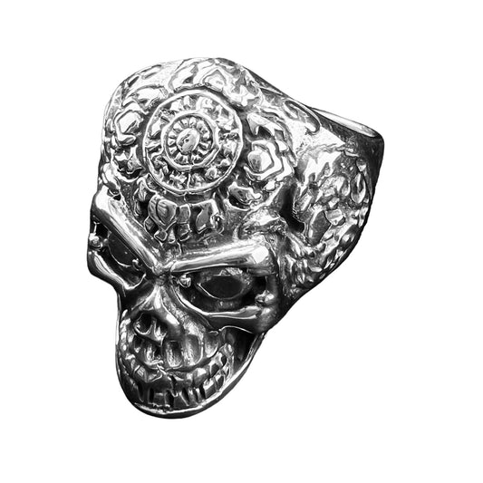 925 Silver Ring Skull with Flowers