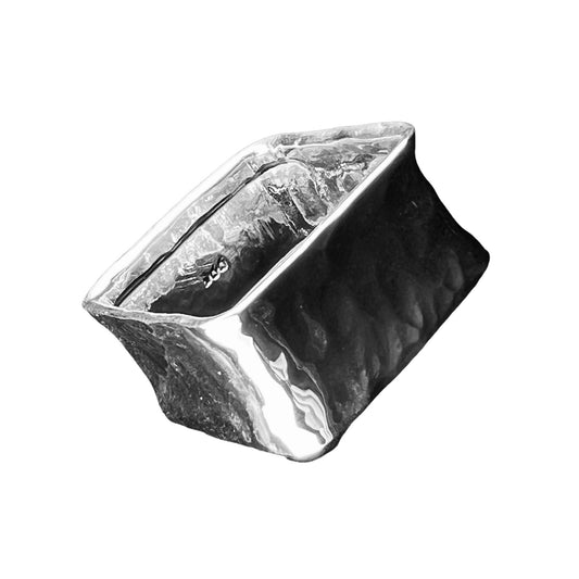 925 Silver Ring 12mm wide Square Hammered