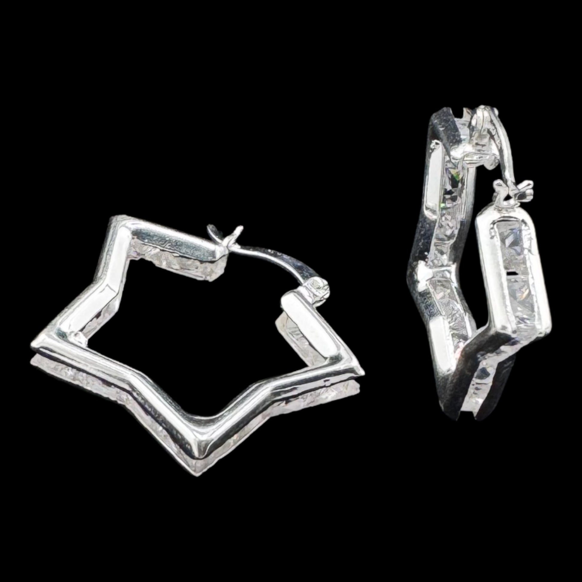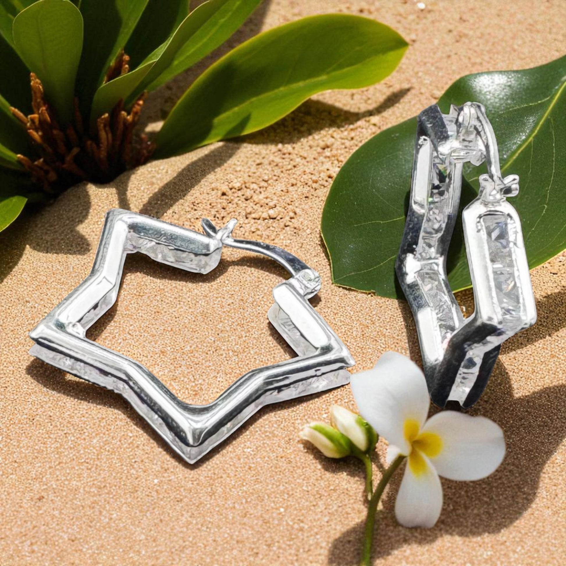 Handcrafted solid 925MX sterling silver 26mm x 26mm Star with Cubic Zirconia earrings CYG2-E003