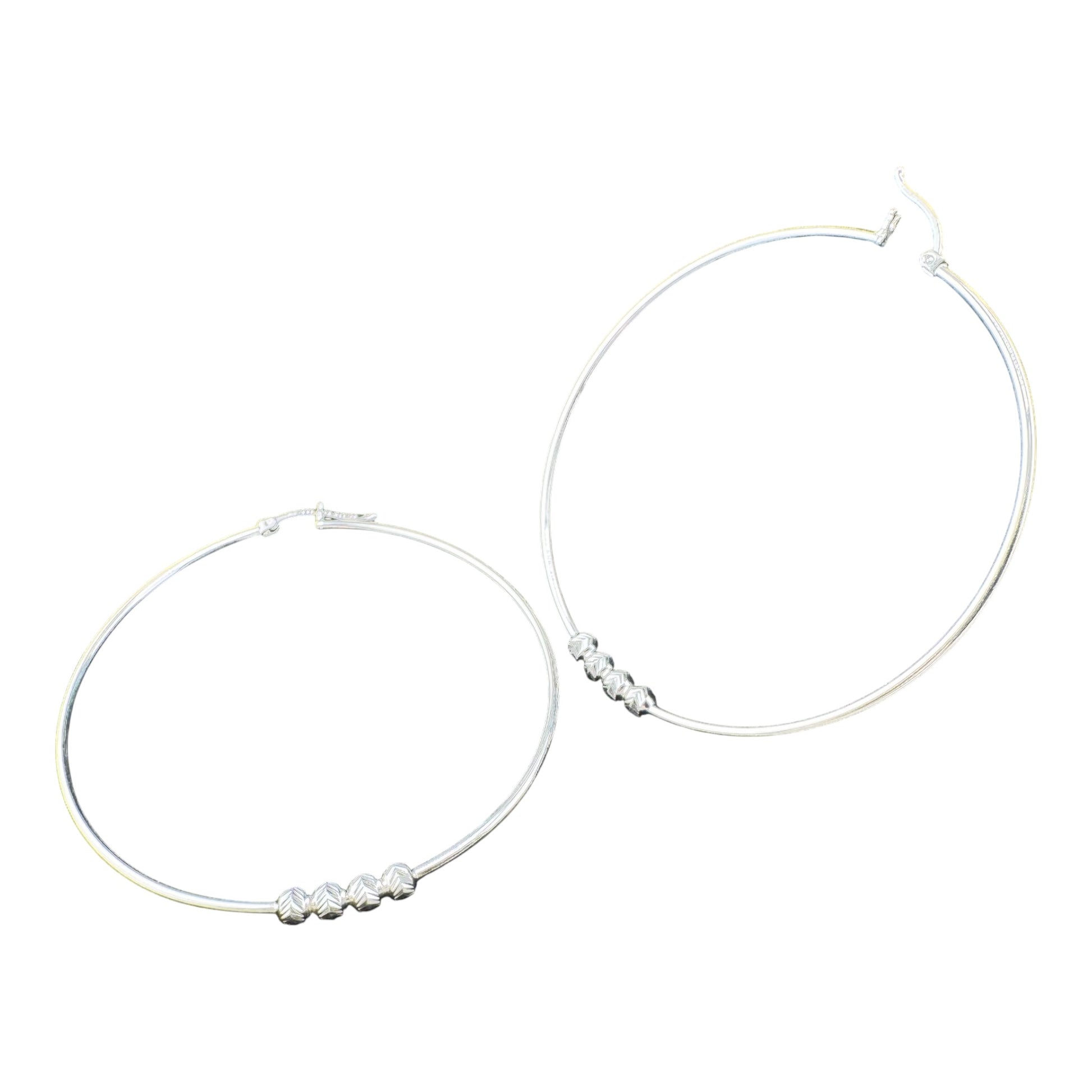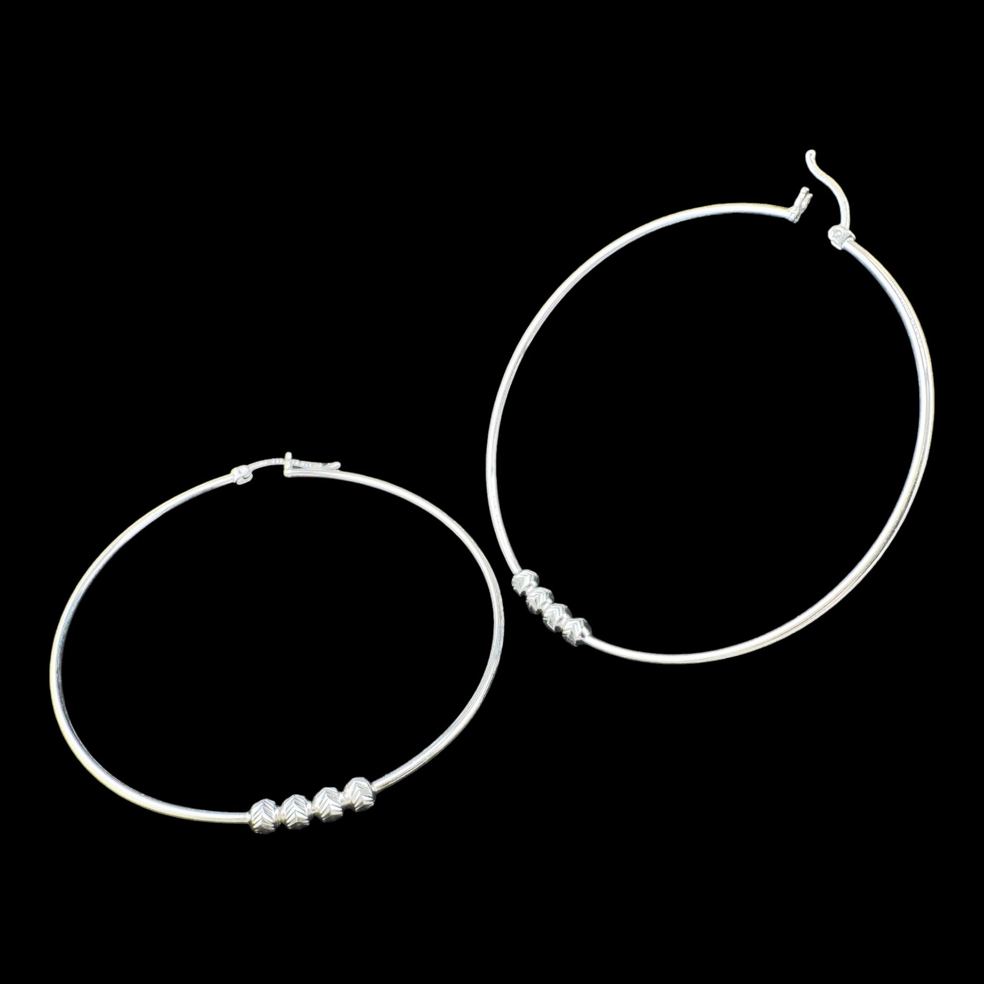 Handcrafted solid 925MX sterling silver 62mm x 1.5 smooth round hoop earrings with diamond cut beads CYG2-E008
