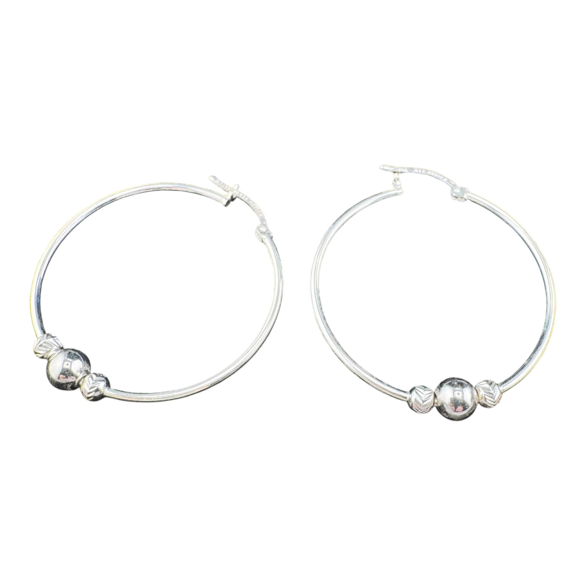 Handcrafted solid 925MX sterling silver 38mm x 1.5mm Smooth round hoop earrings with diamond cut and smooth beads CYG2-E010
