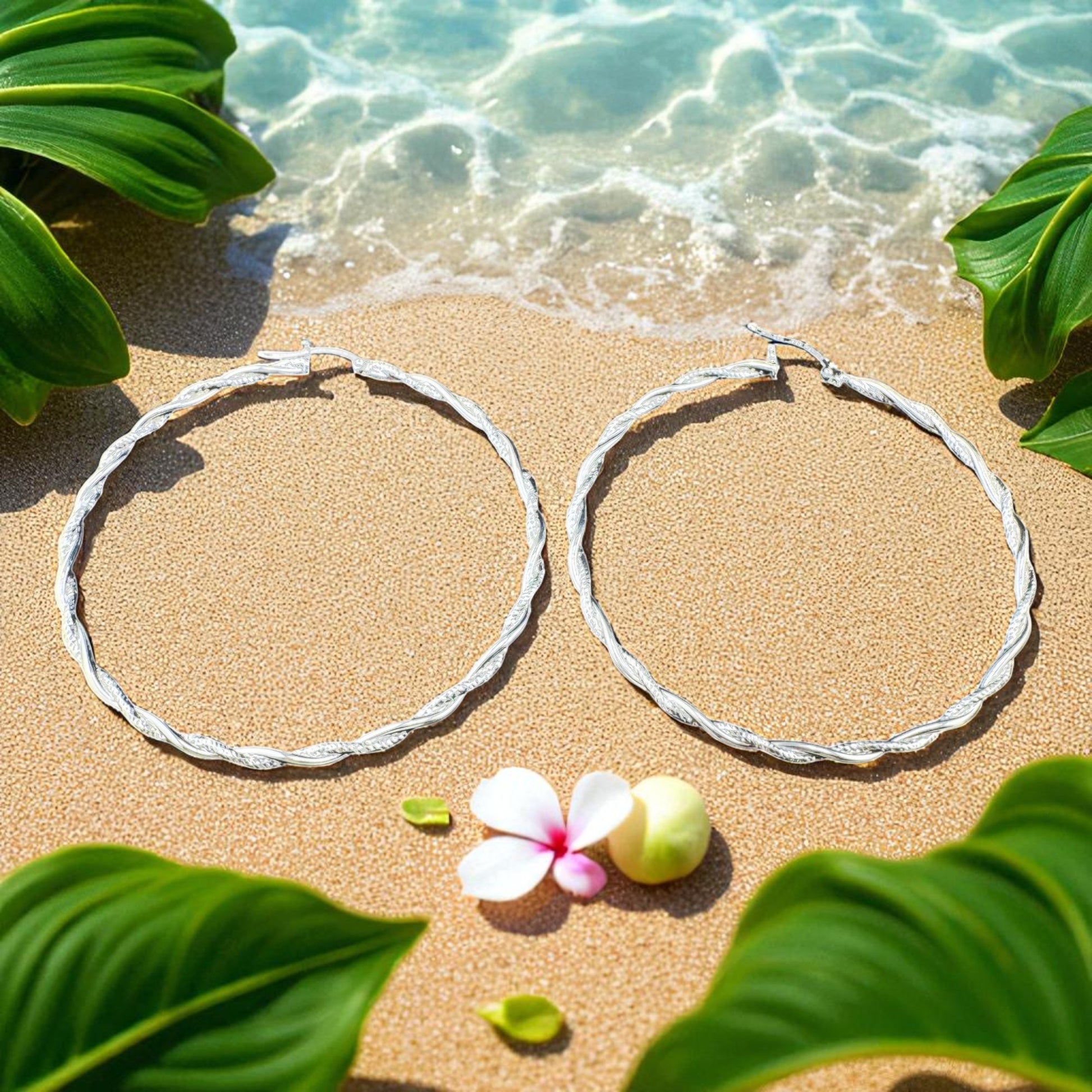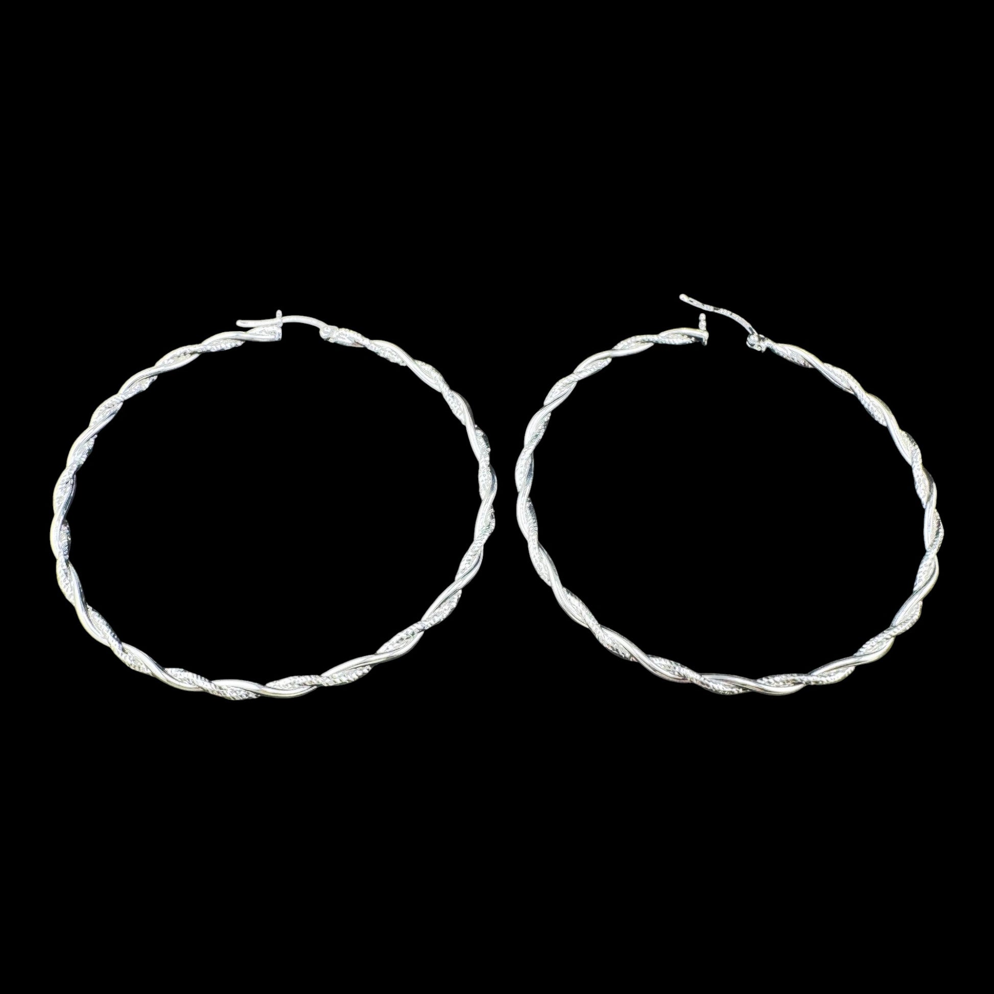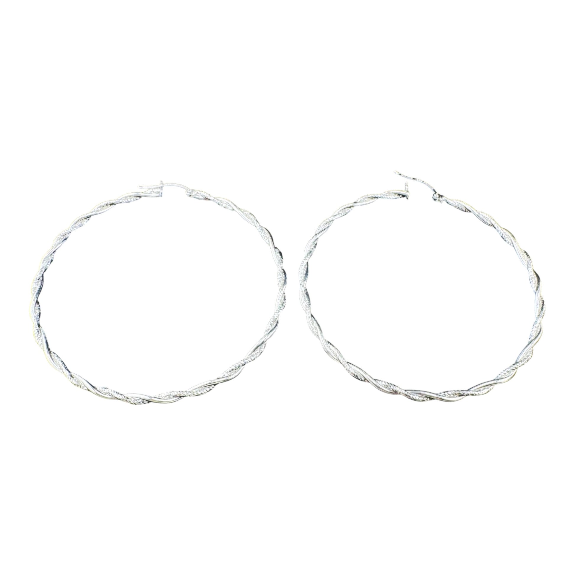 Handcrafted solid 925MX sterling silver 63mm x 2.7mm hoop earrings with twisted smooth and diamond cut wire CYG2-E011