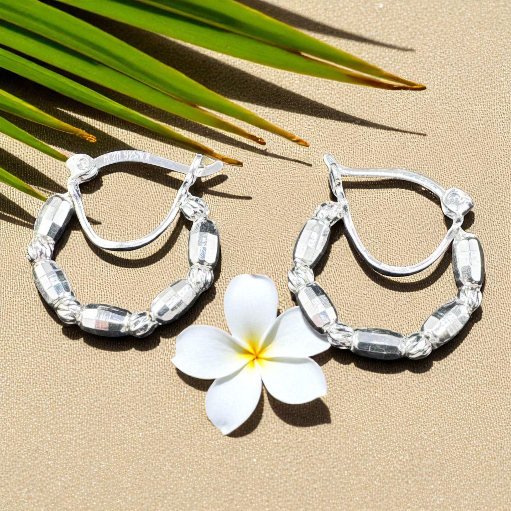 Handcrafted solid 925MX sterling silver 18.5mm x 2.5 dot-dash-dot hoop earrings CYG2-E017
