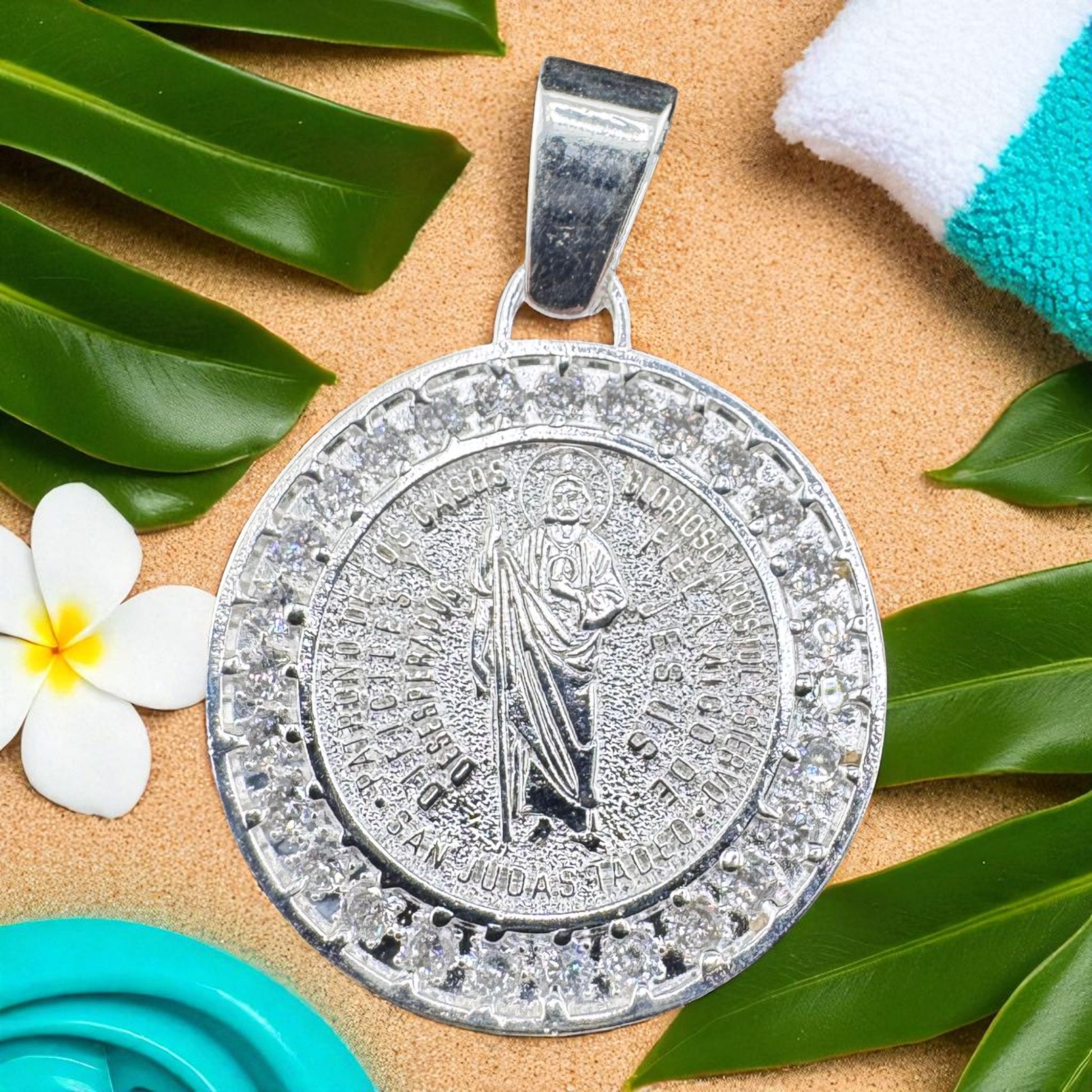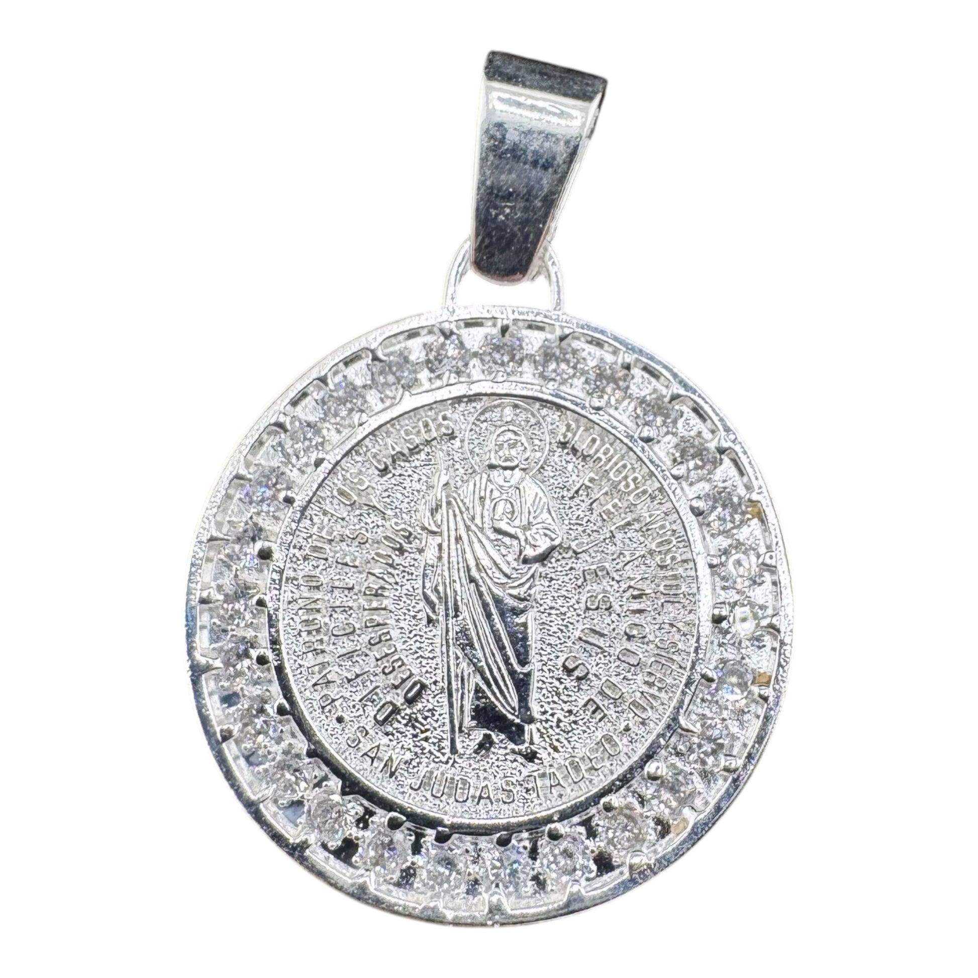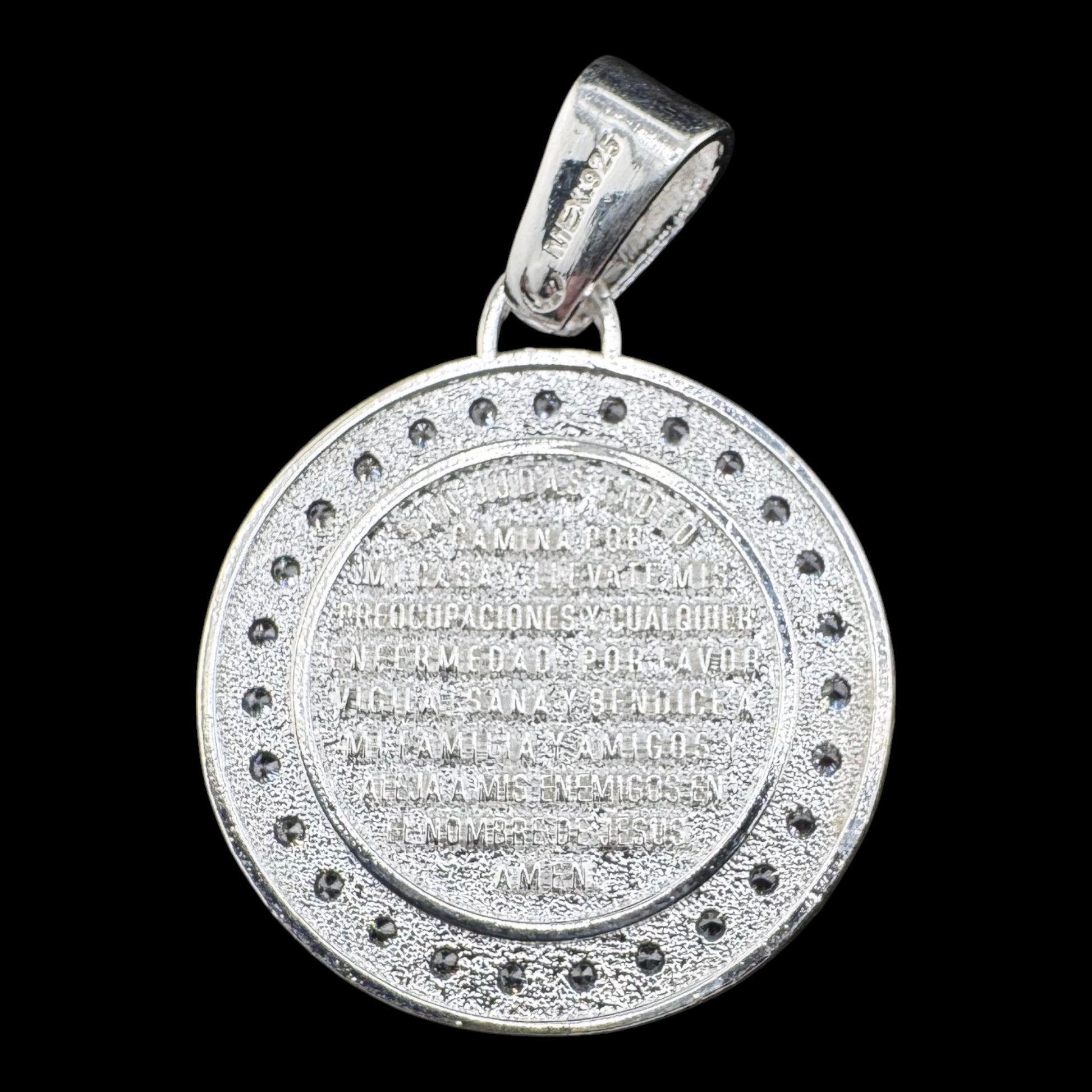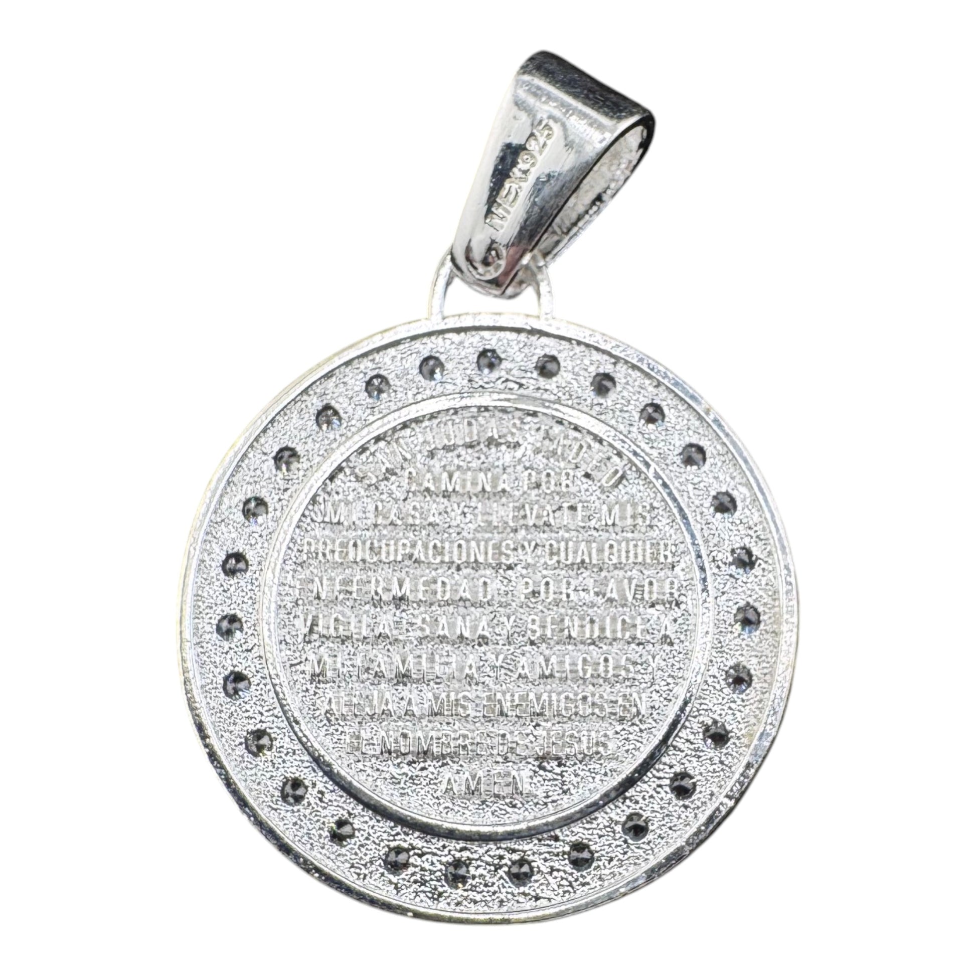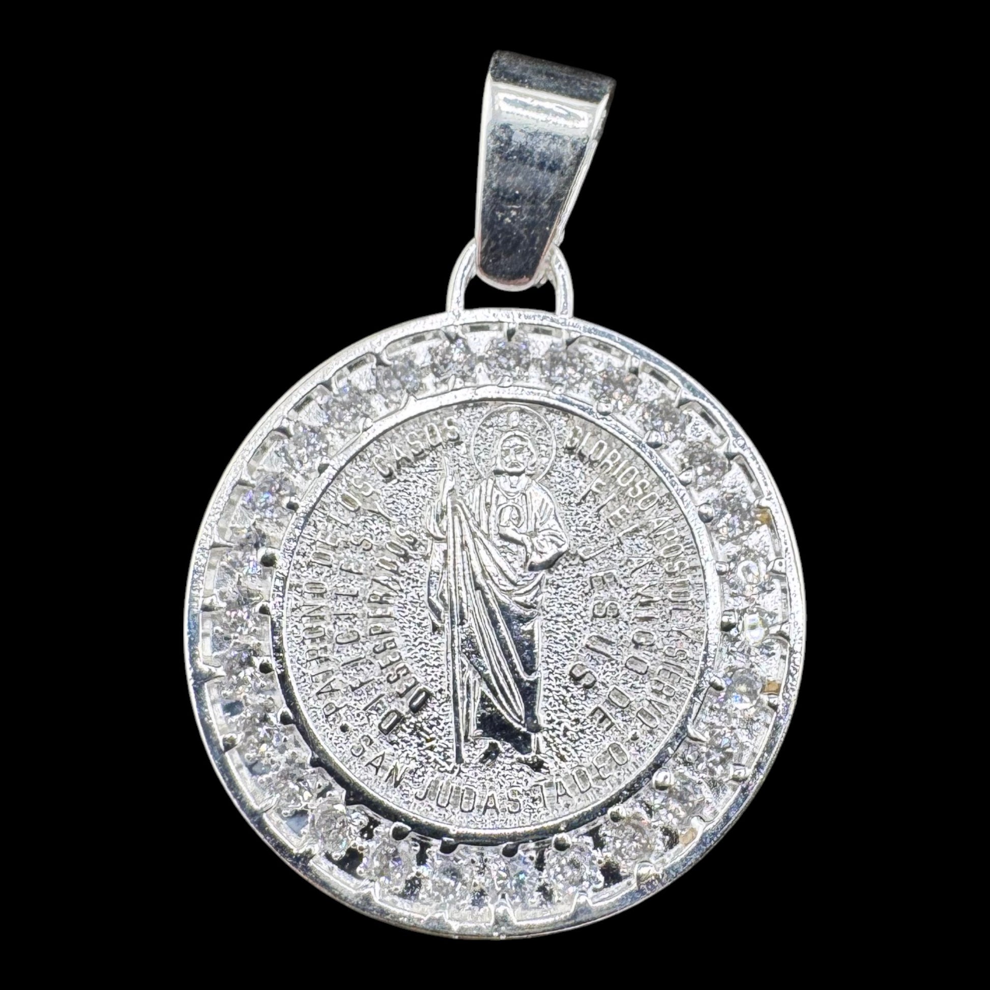 Handcrafted solid 925MX sterling silver 29mm Saint Benedict .925 Sterling Silver Pendant w Cubic Zirconia. St. Benedict has been associated with opening difficult paths, protection from evil, and protecting good health. CYG2-P003