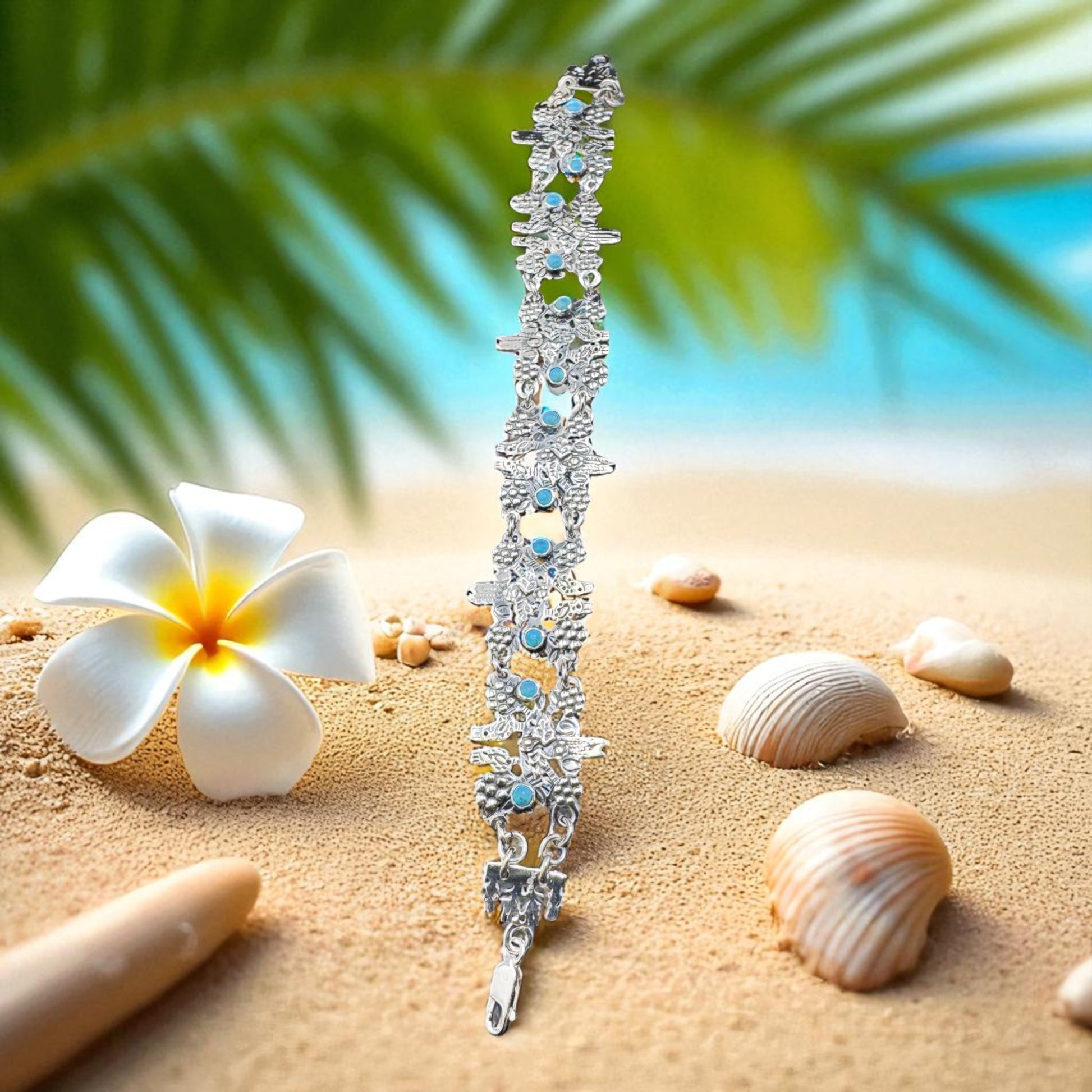 Artisan crafted solid 925MX sterling silver Doble Pechuga Mini Turquoise pulsera, doves with turquoise 23mm x 185mm Bracelet, EB2-B001