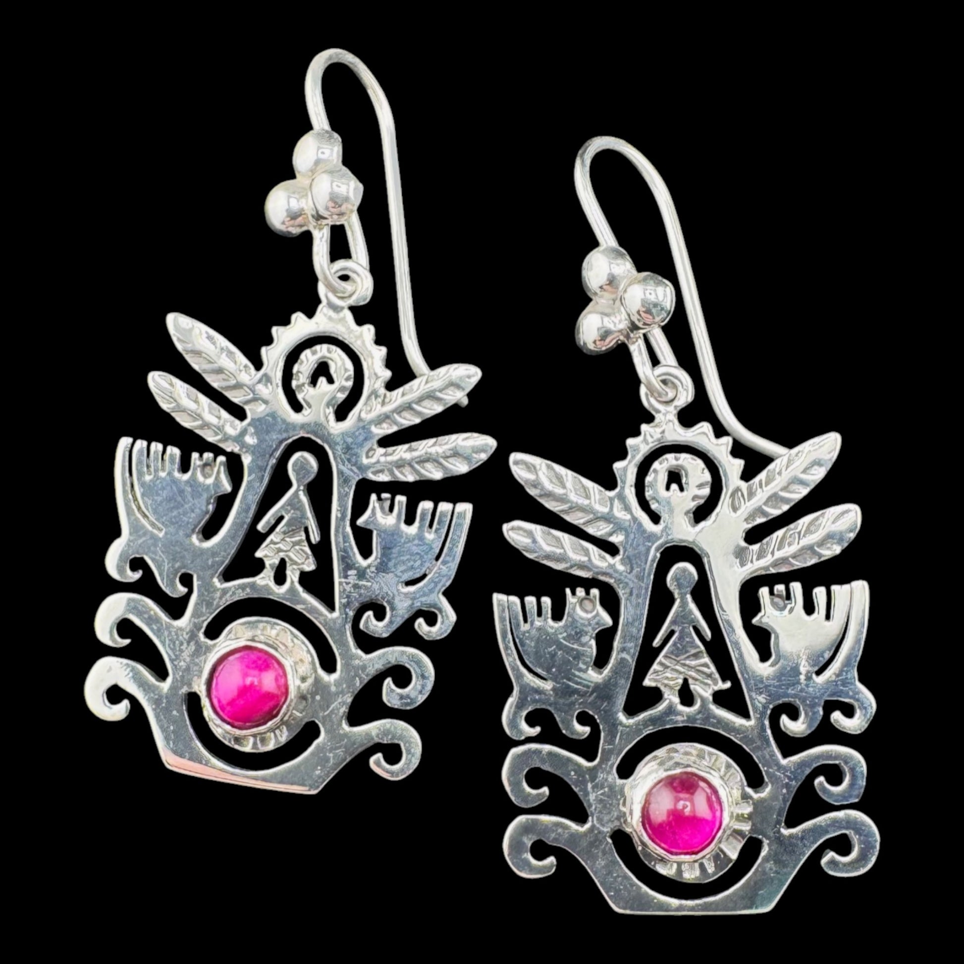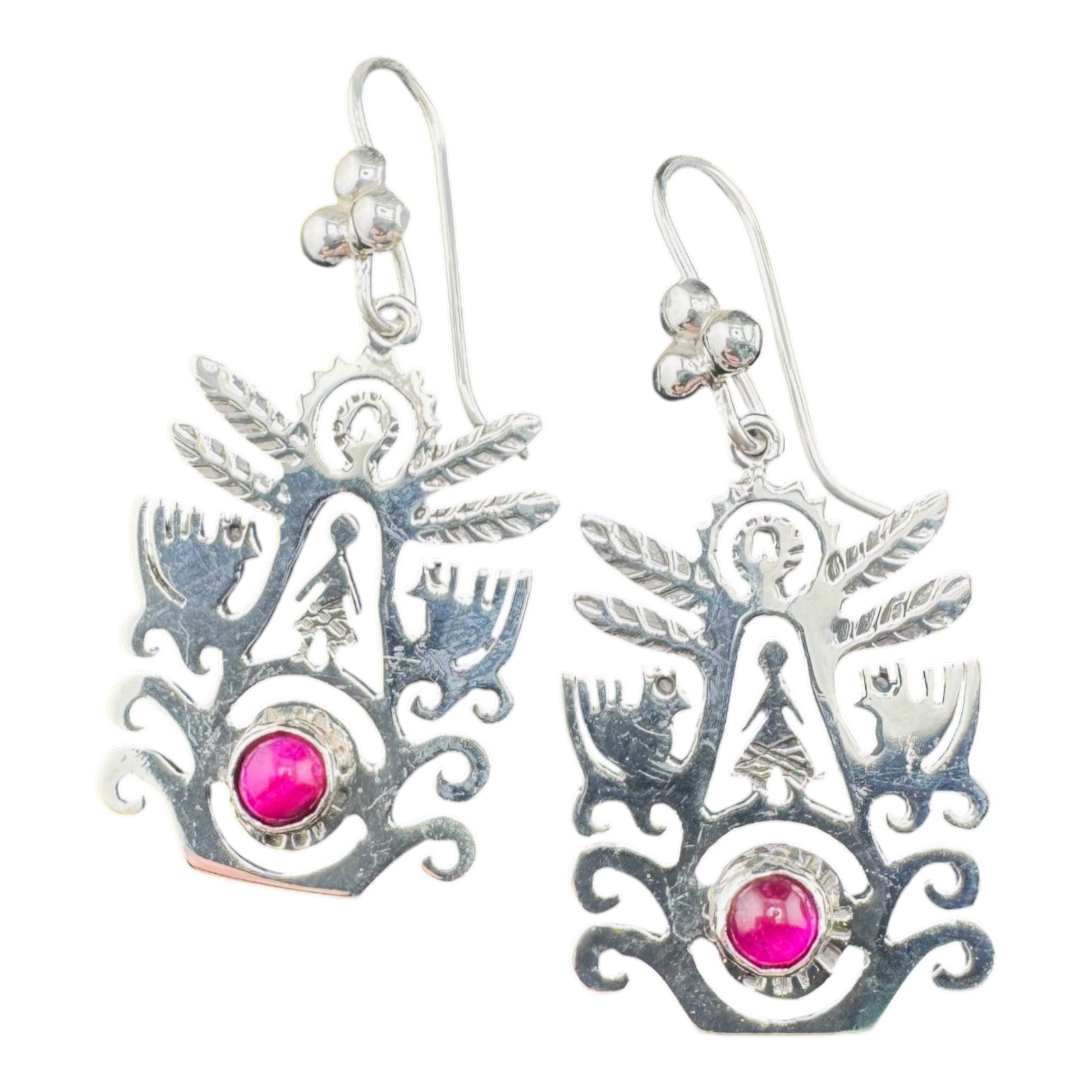 Artisan crafted solid 925MX sterling silver Arbol de Vida con Piedra Rojo, tree of life with pink gemstone 20mm x 31mm , EB2-E004