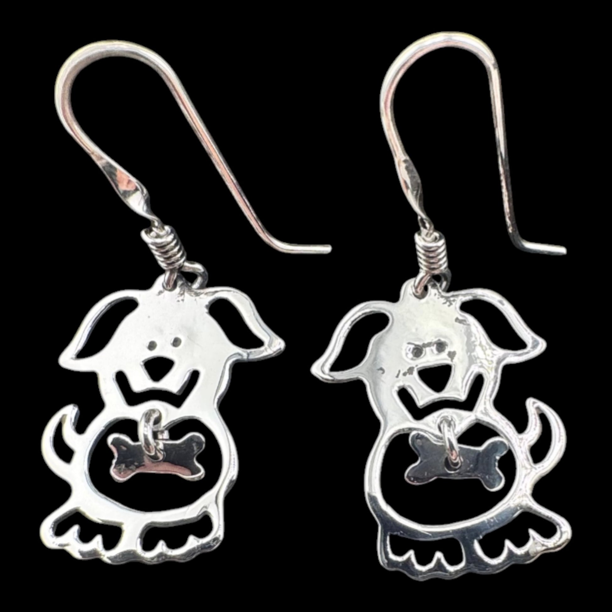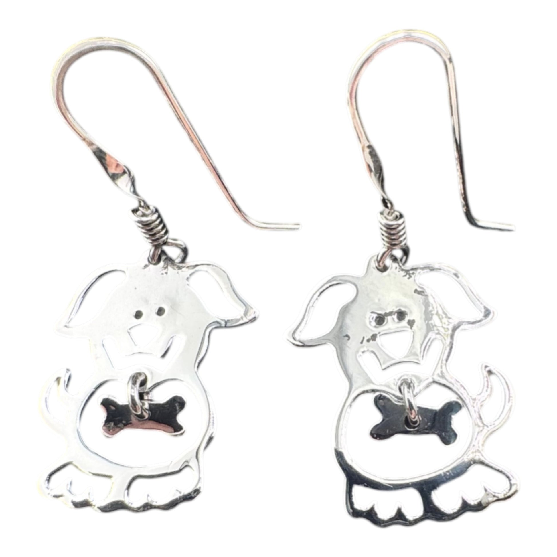 Artisan crafted solid 925MX sterling silver Perro con Hueso, dog with bone 19mm x 22mm drop earrings, EB2-E010