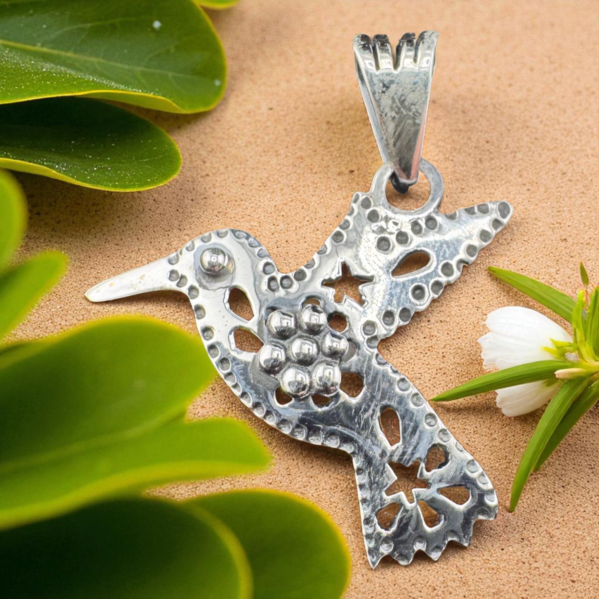 Artisan crafted solid 925MX sterling silver Colibre Picado Chico (hummingbird)26mm x 26mm .925 Pendant, EB2-P006