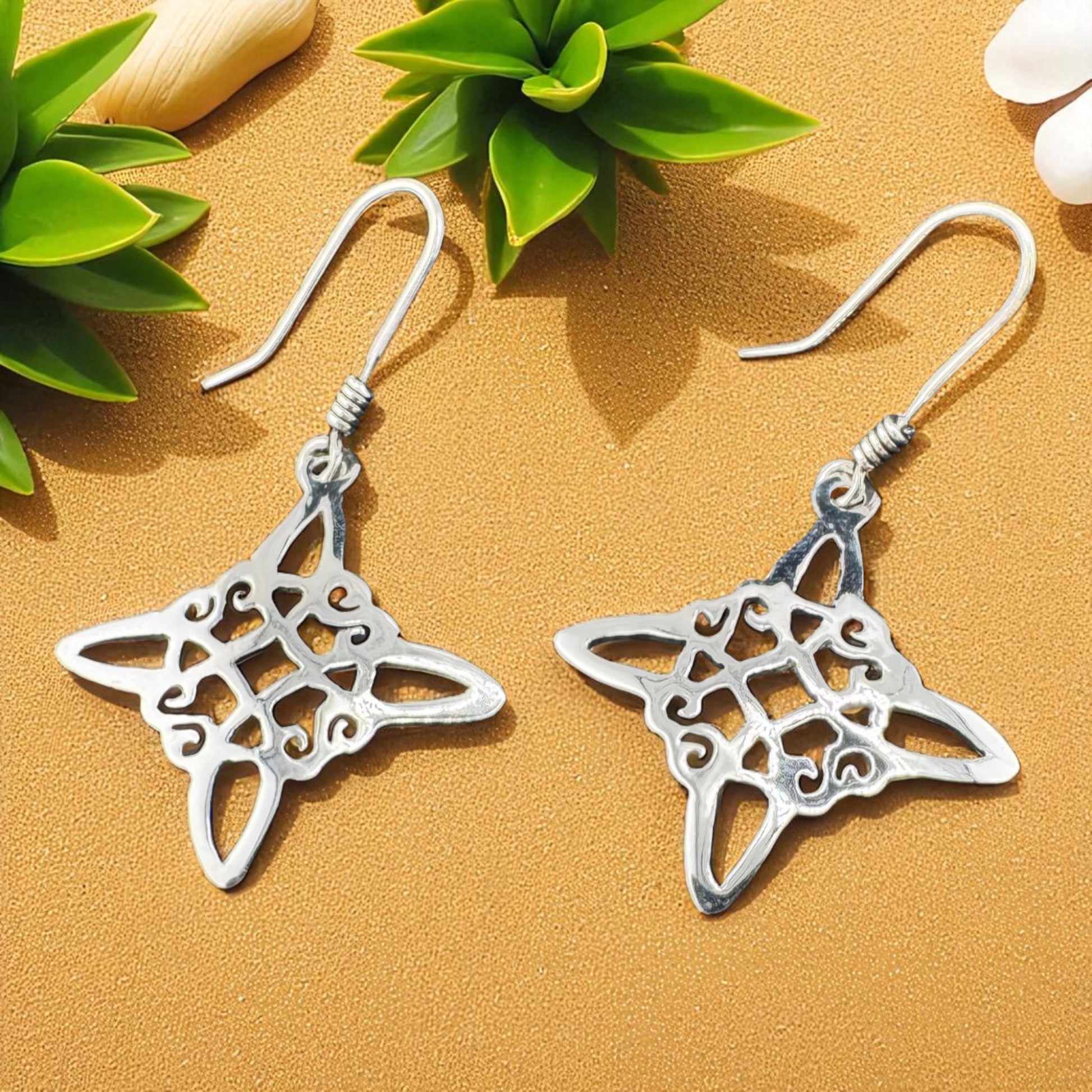 Embrace timeless symbolism with our exquisite Celtic Knot Drop Earrings. These captivating earrings feature an intricate, interwoven Celtic knot design, representing eternal love, unity, and continuity. Artisan crafted from solid .925 sterling silver, these earrings gleam with carefully crafted details, making them a meaningful and versatile accessory. Approx. 28mm., Celtic Knot Drop Earrings, JTO-E006