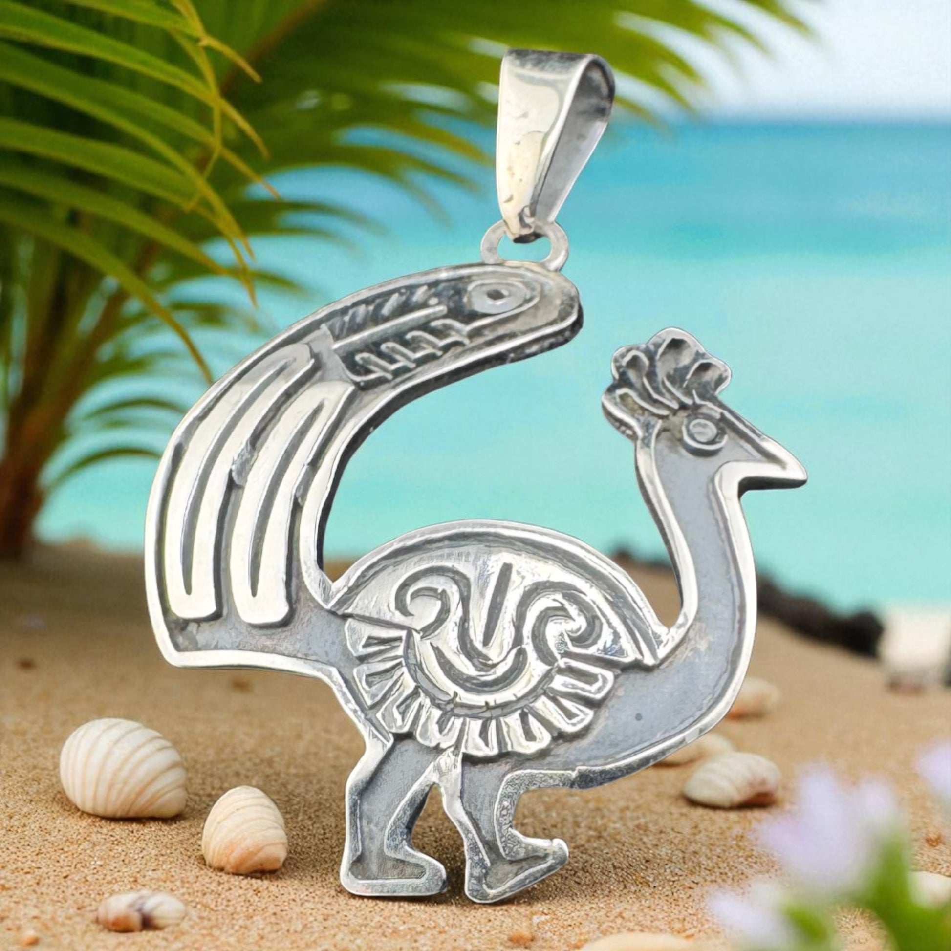 Embrace exotic beauty with our exquisite Quetzal Bird Pendant, featuring a beautifully detailed Quetzal bird, a symbol of freedom and beauty in Mesoamerican cultures. Hand crafted from solid .925 sterling silver, with perfectly finished details,it's a charming and versatile accessory. Approx. 34mm x 35mm., Quetzal Bird Pendant, JTO-P009