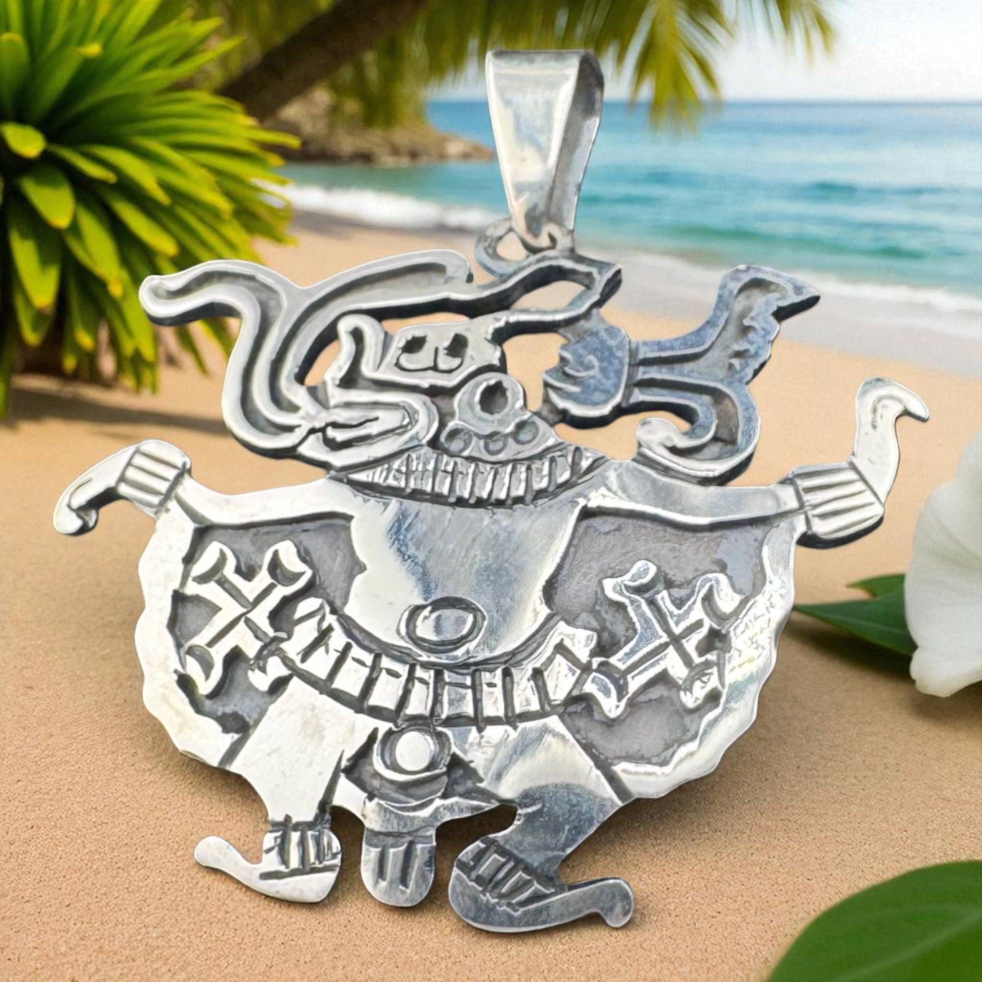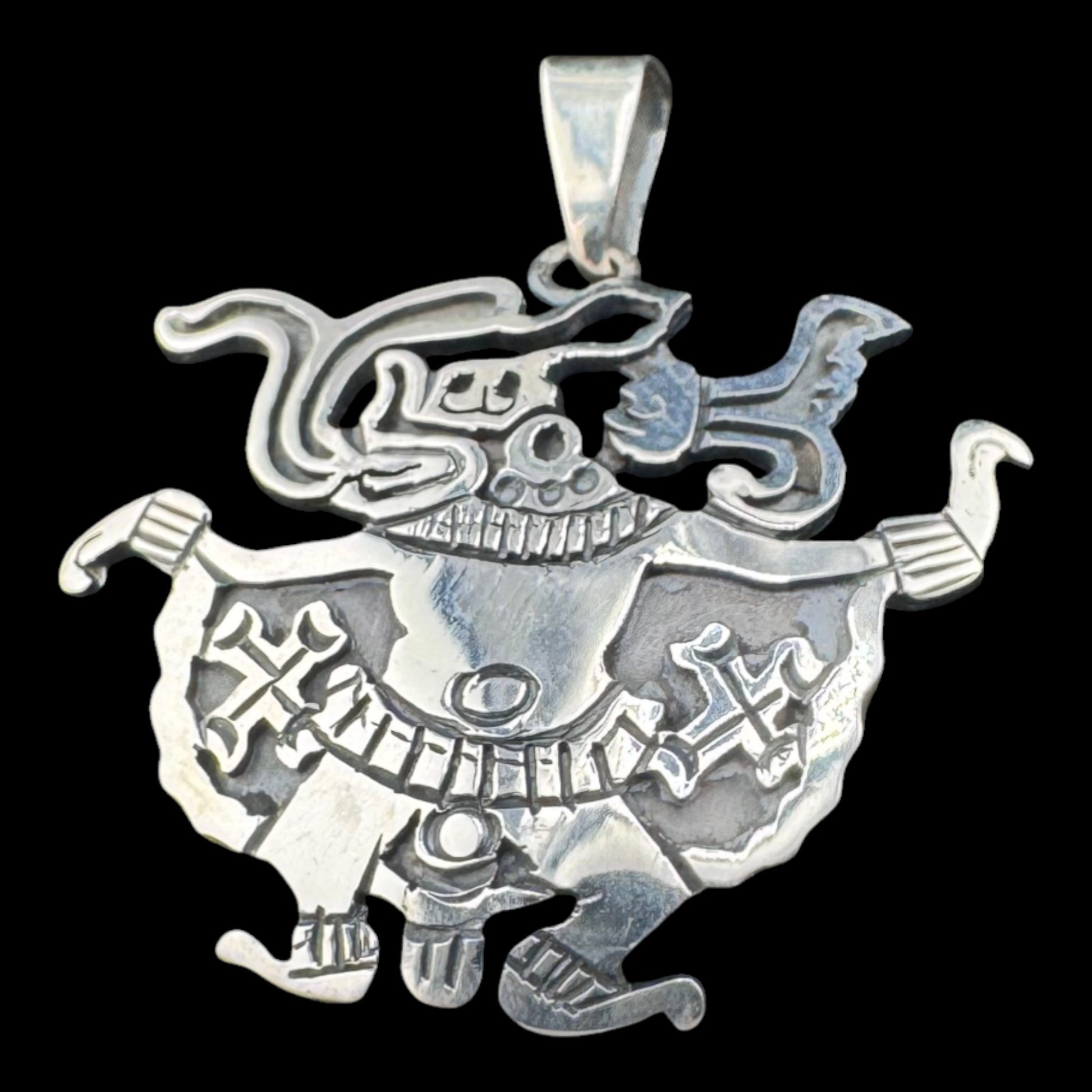 Discover ancient power with this Aztec Deity Pendant. A captivating piece featuring a detailed depiction of an Aztec figure, rich in cultural and symbolic meaning, handcrafted from solid .925 sterling silver, - a powerful and versatile accessory. Approx. 42mm x 37mm., Aztec Deity Pendant, JTO-P010