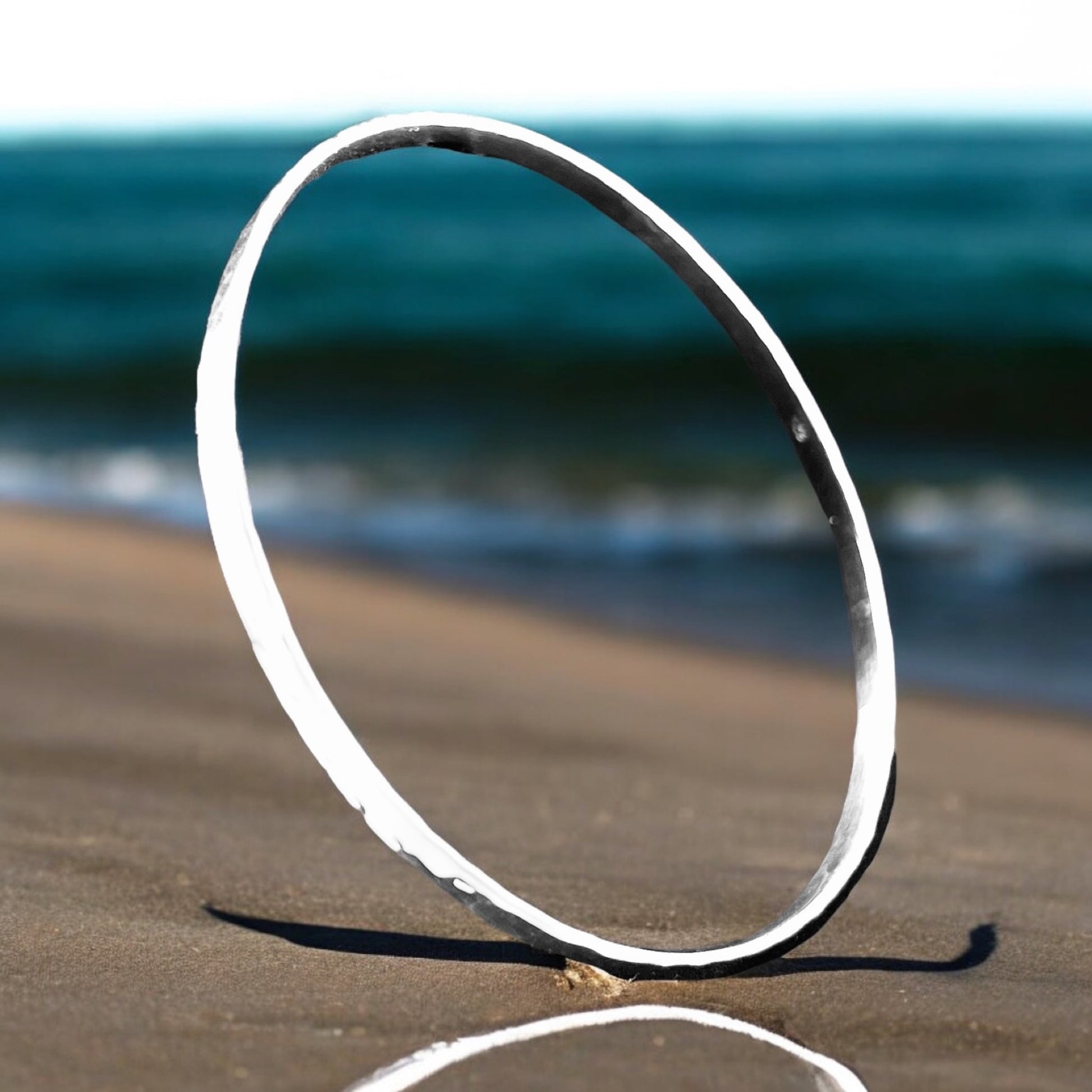 Sterling Silver .925 Bangle Bracelet 68mmx2mm flat Hammered
